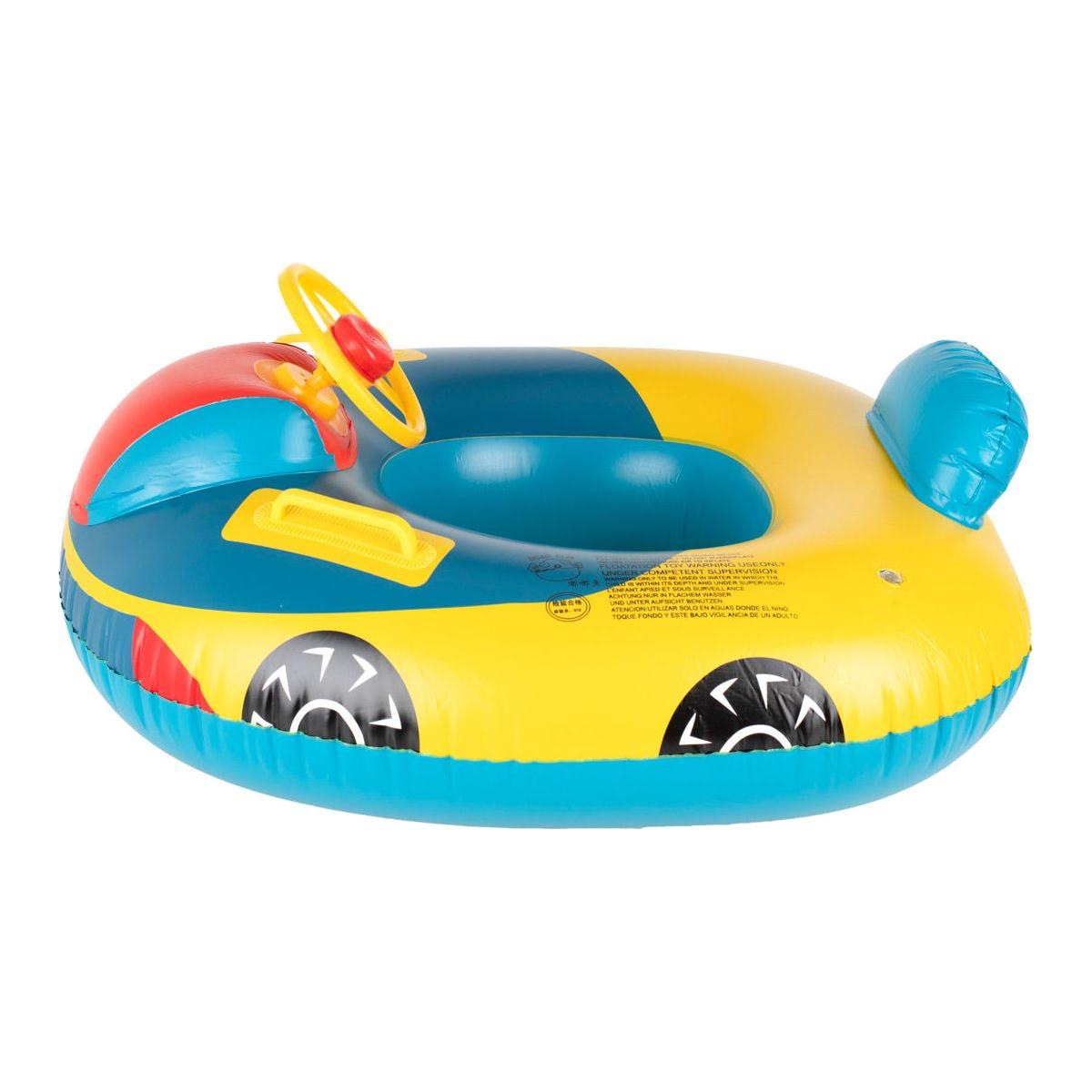 Opblaasbare rubberboot matras voor kinderen met stuurwiel: Een autovormig ponton dat gemaakt is van hoogwaardig PVC voor duurzaamheid.