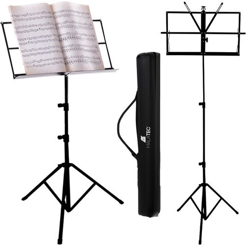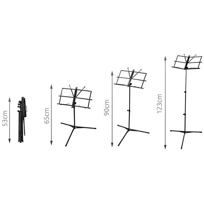 Opvouwbare en verstelbare muziekblad standaard in opbergtas zwart
