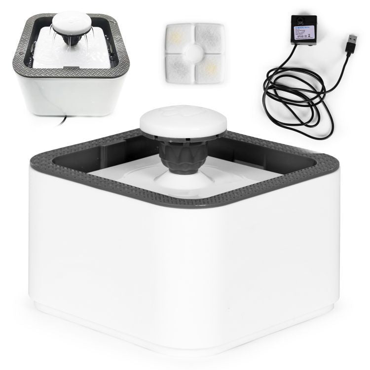 Praktische en eenvoudig te reinigen drinkbak met fontein voor je huisdier. Inclusief USB-aansluiting voor gemakkelijke stroomvoorziening.