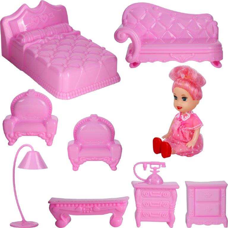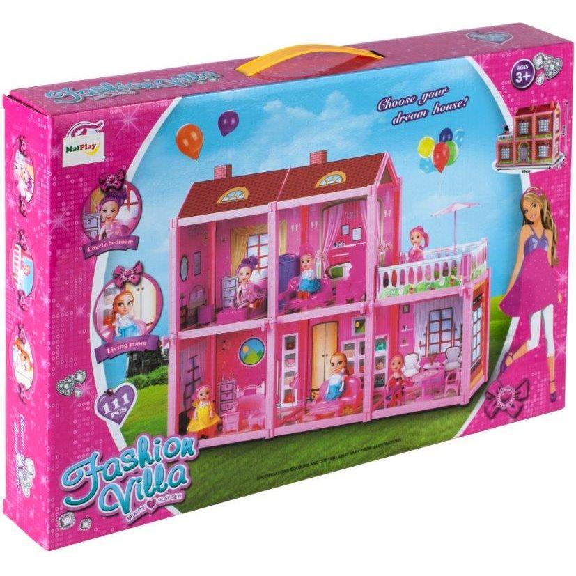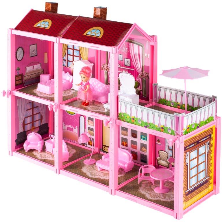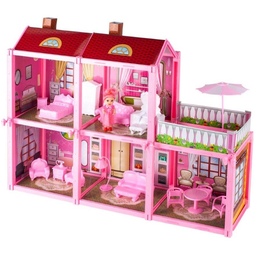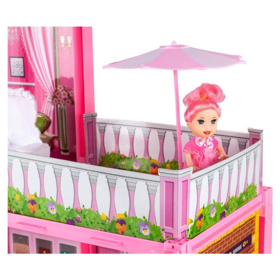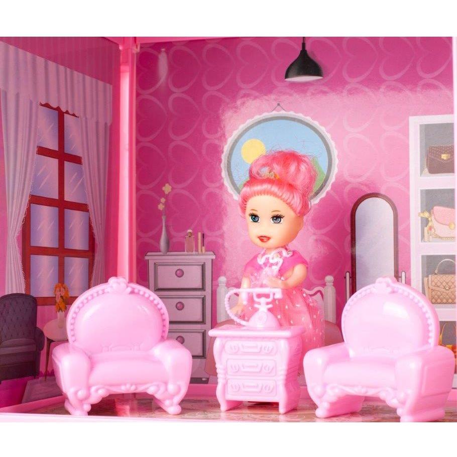 Poppenhuis villa met 2 verdiepingen inclusief accessoires en pop roze 60 x 17 x 44 cm
