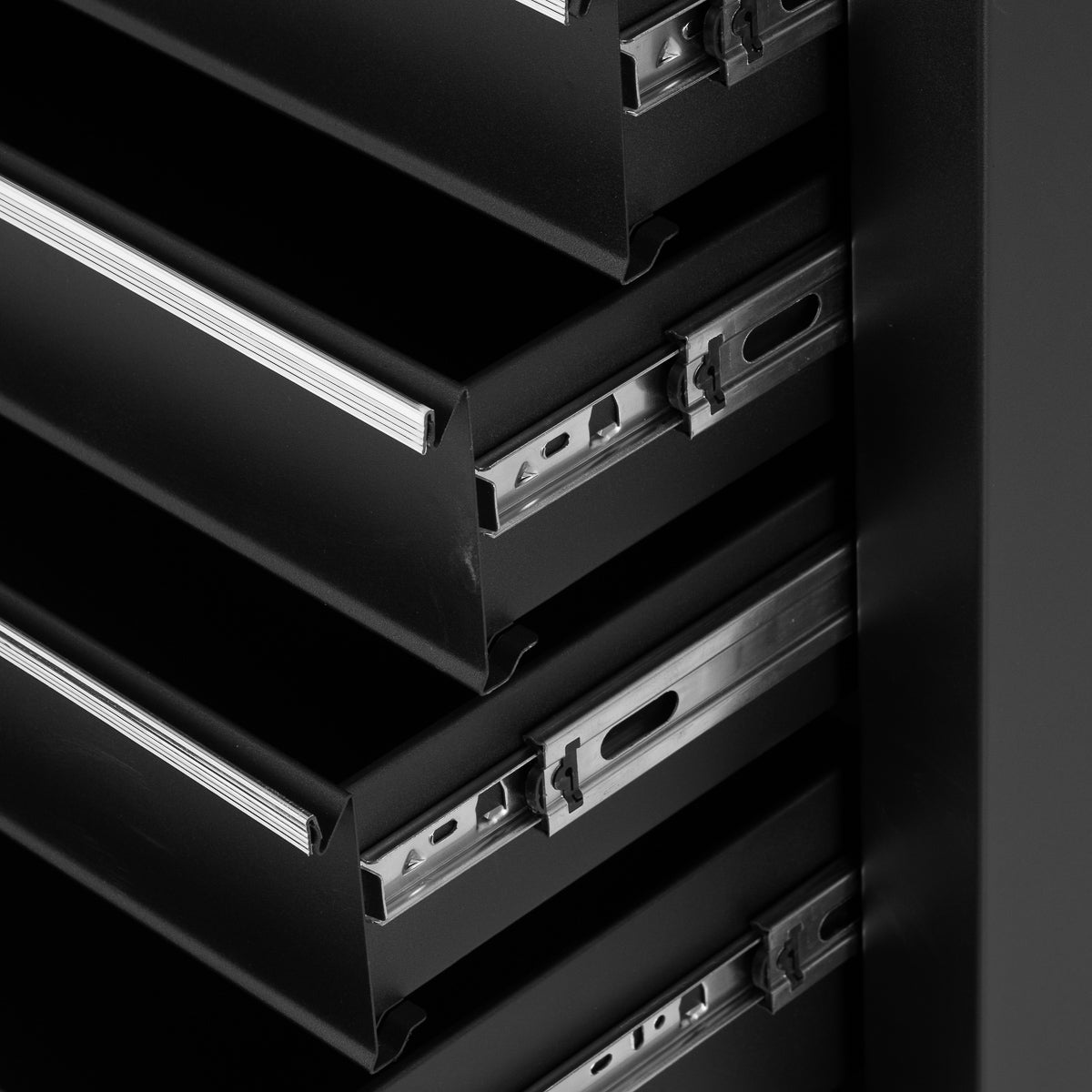 2. Alles blijft op zijn plekAntislipmatten in alle lades én op het bovenblad voorkomen schuiven.