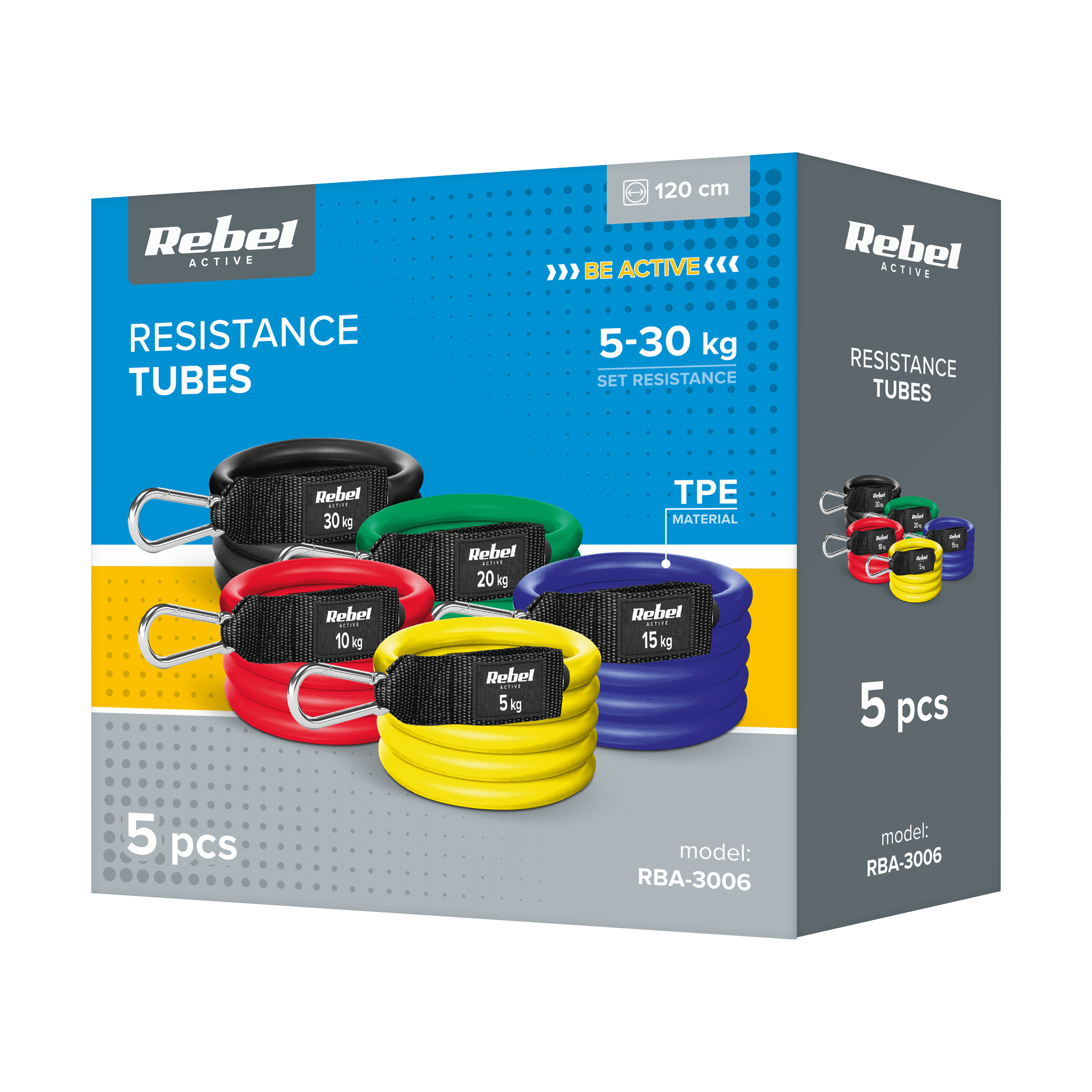 Set weerstandsbanden voor oefeningen - Power Tube Set, 5-30 kg, 5 banden, Rebel Active