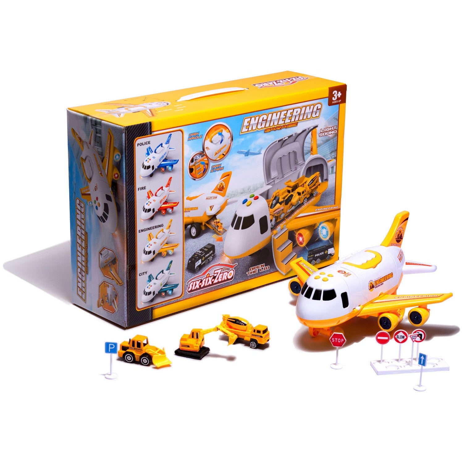 Speelgoed vliegtuig met licht en geluid + 3 bouw auto voertuigen