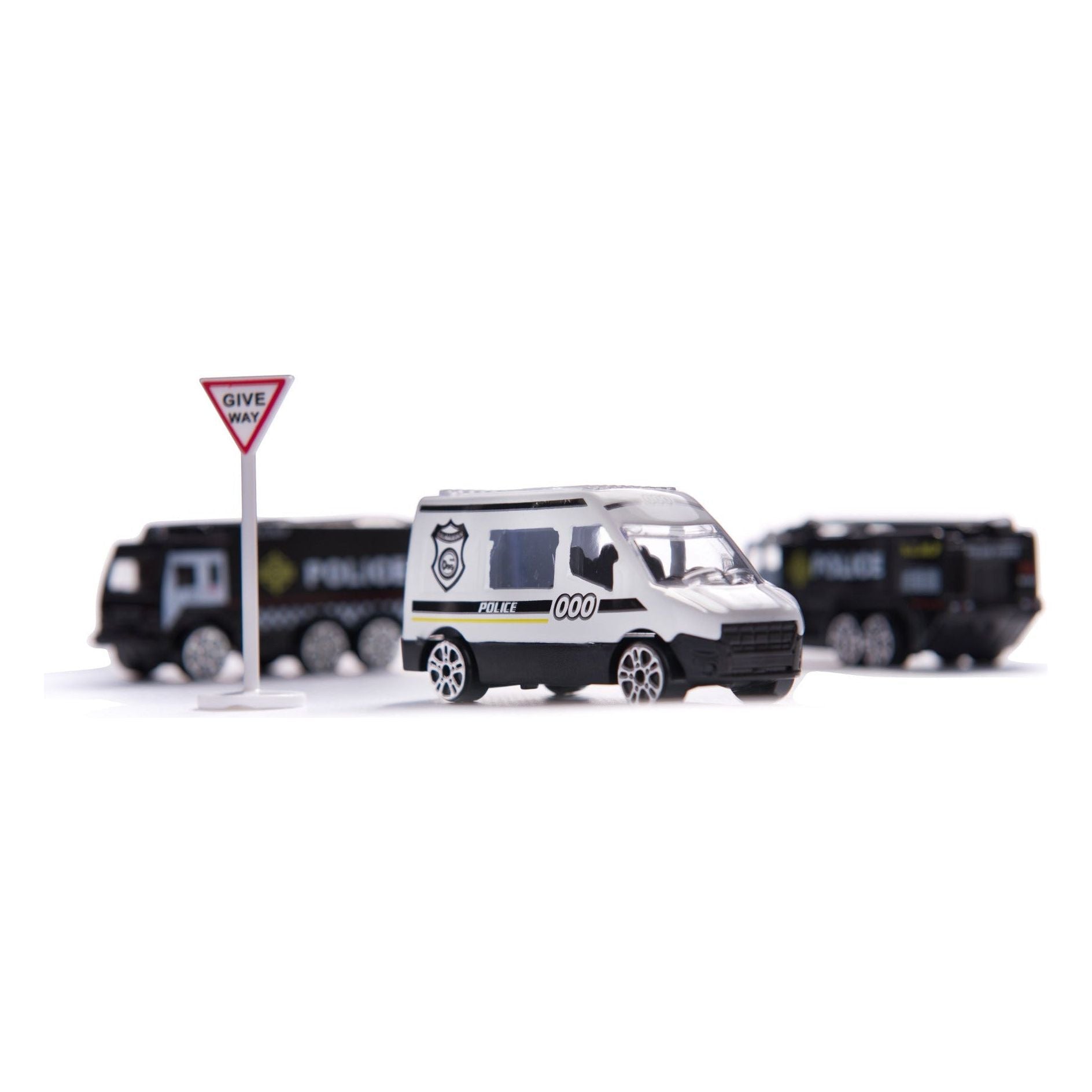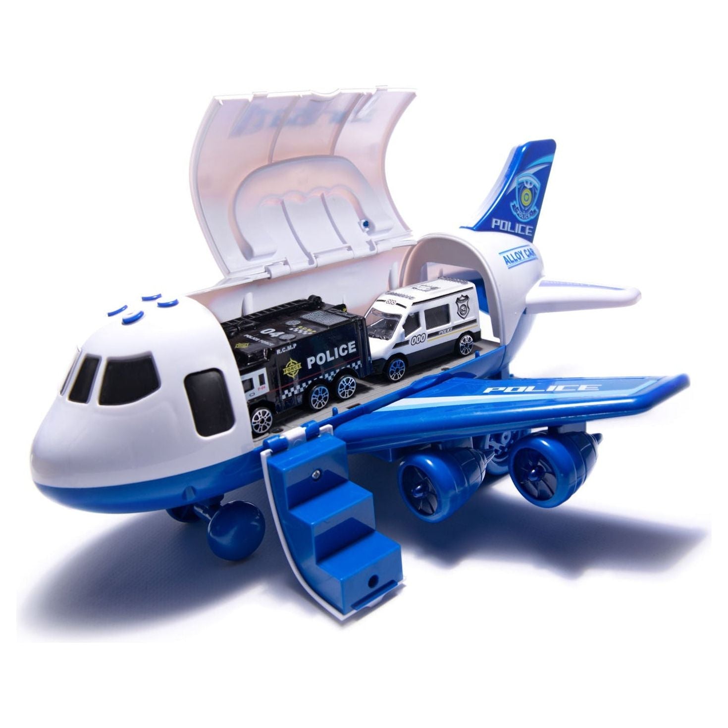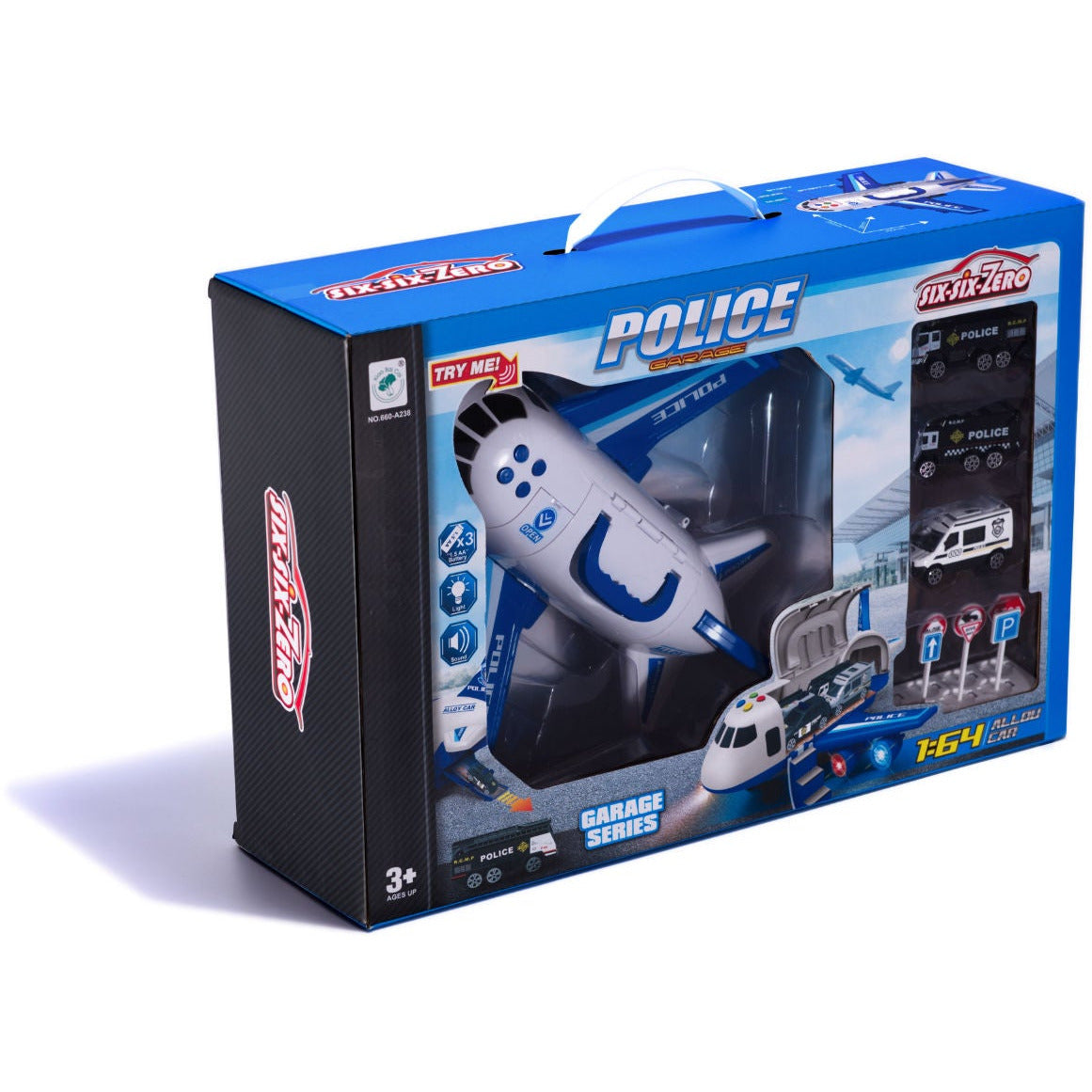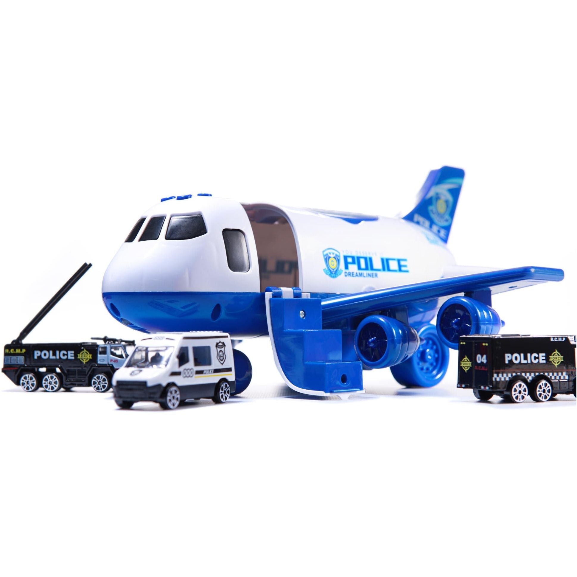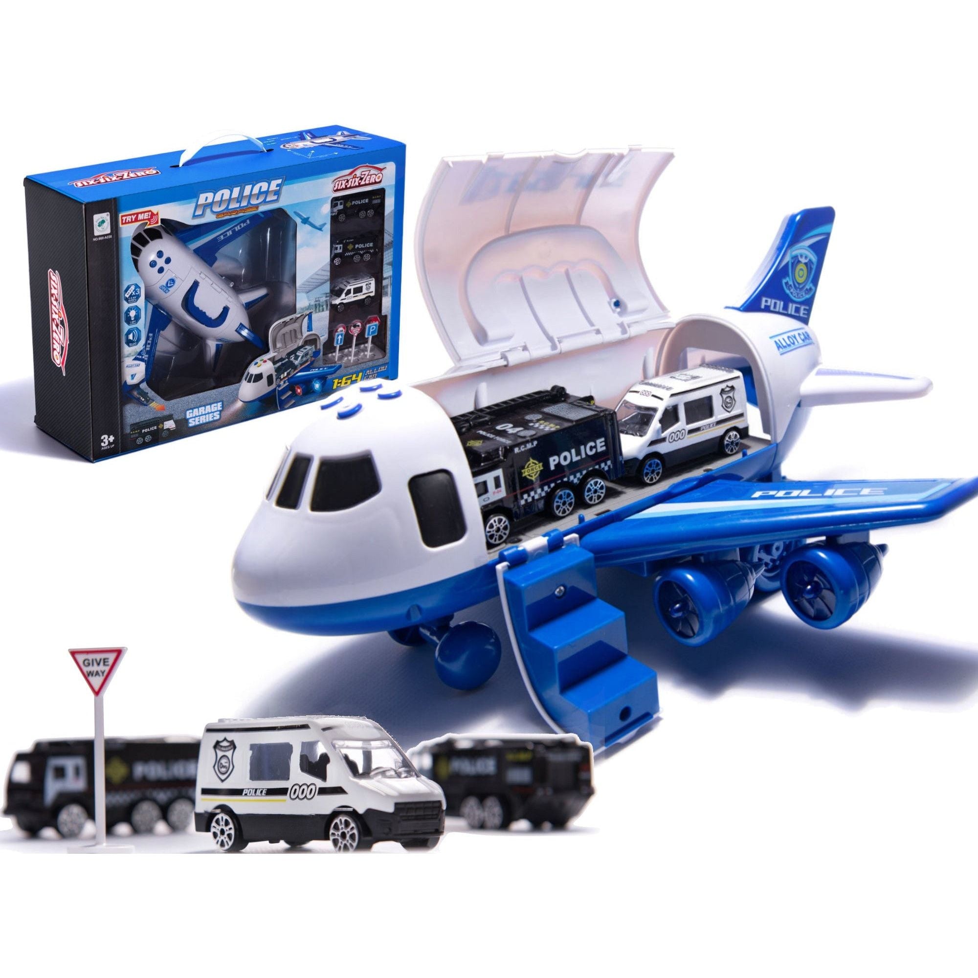 Speelgoed vliegtuig met licht en geluid + 3 politie auto voertuigen