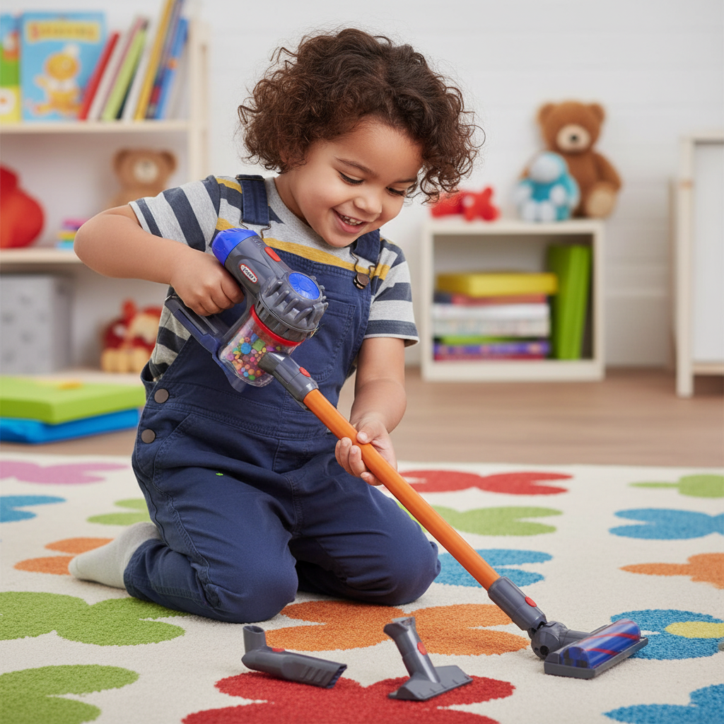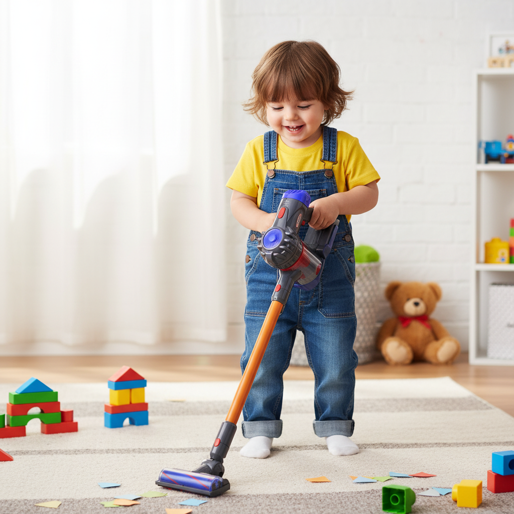Laat je kind spelen, leren en helpen met de speelgoedstofzuiger met licht en geluid. Realistisch, leerzaam en veilig – een fantastisch cadeau dat schoonmaken leuk maakt!