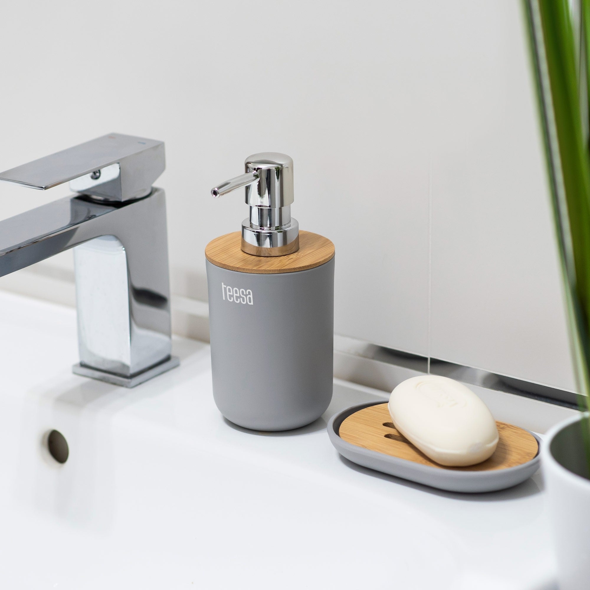 Teesa 6-delige badkamer accessoires set grijs/bamboo TSA0400-G
