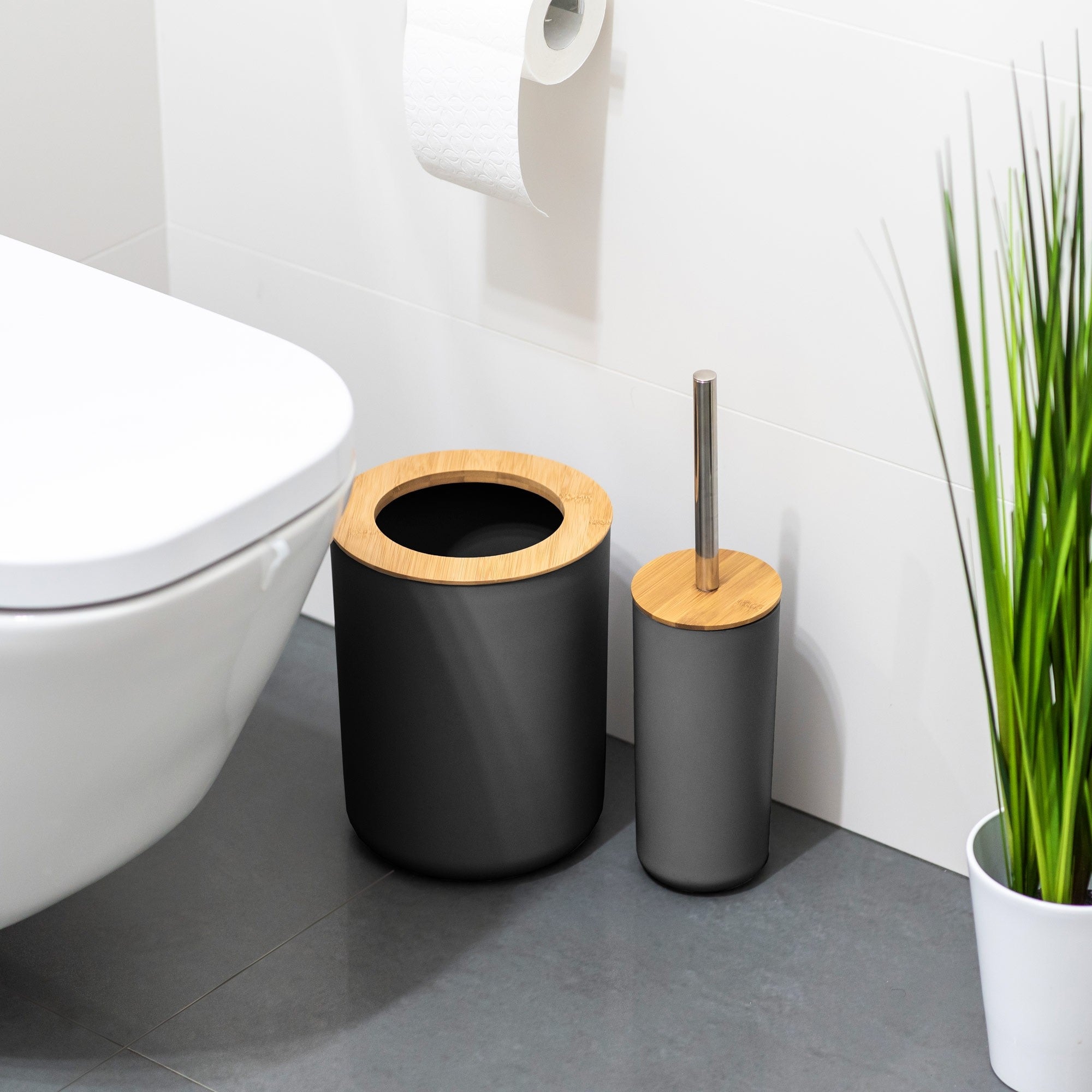 Teesa 6-delige badkamer accessoires set zwart/bamboo TSA0400-B