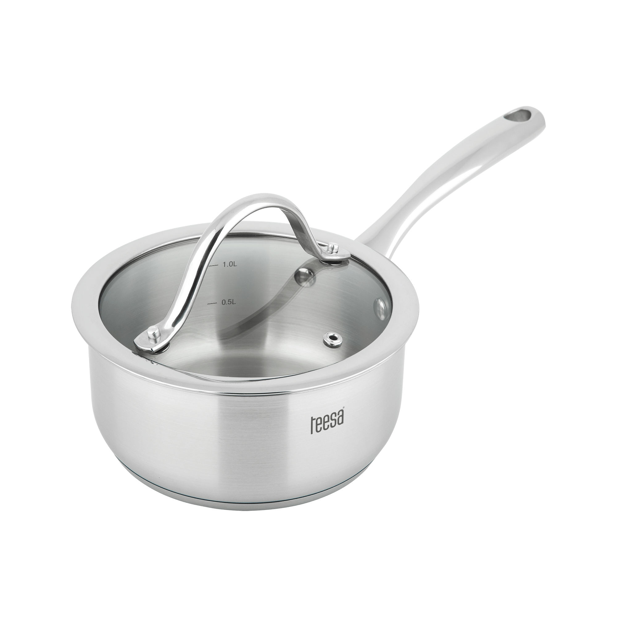 Op zoek naar stevige roestvrijstalen pannen voor in jouw keuken? De Teesa COOK EXPERT MASTER pannenset is speciaal ontworpen om aan al jouw kookbehoeften te voldoen. Met een inhoud van 6 liter en 3 liter, een handige steelpan van 1 liter en drie deksels, kun je moeiteloos diverse gerechten bereiden. Dankzij het geprofileerde ontwerp wordt morsen voorkomen. Deze potten zijn gemaakt van hoogwaardig 18/10 staal, zijn bestand tegen corrosie en hoge temperaturen, en hebben een handige literschaal en glazen deksels. Geschikt voor alle soorten fornuizen.