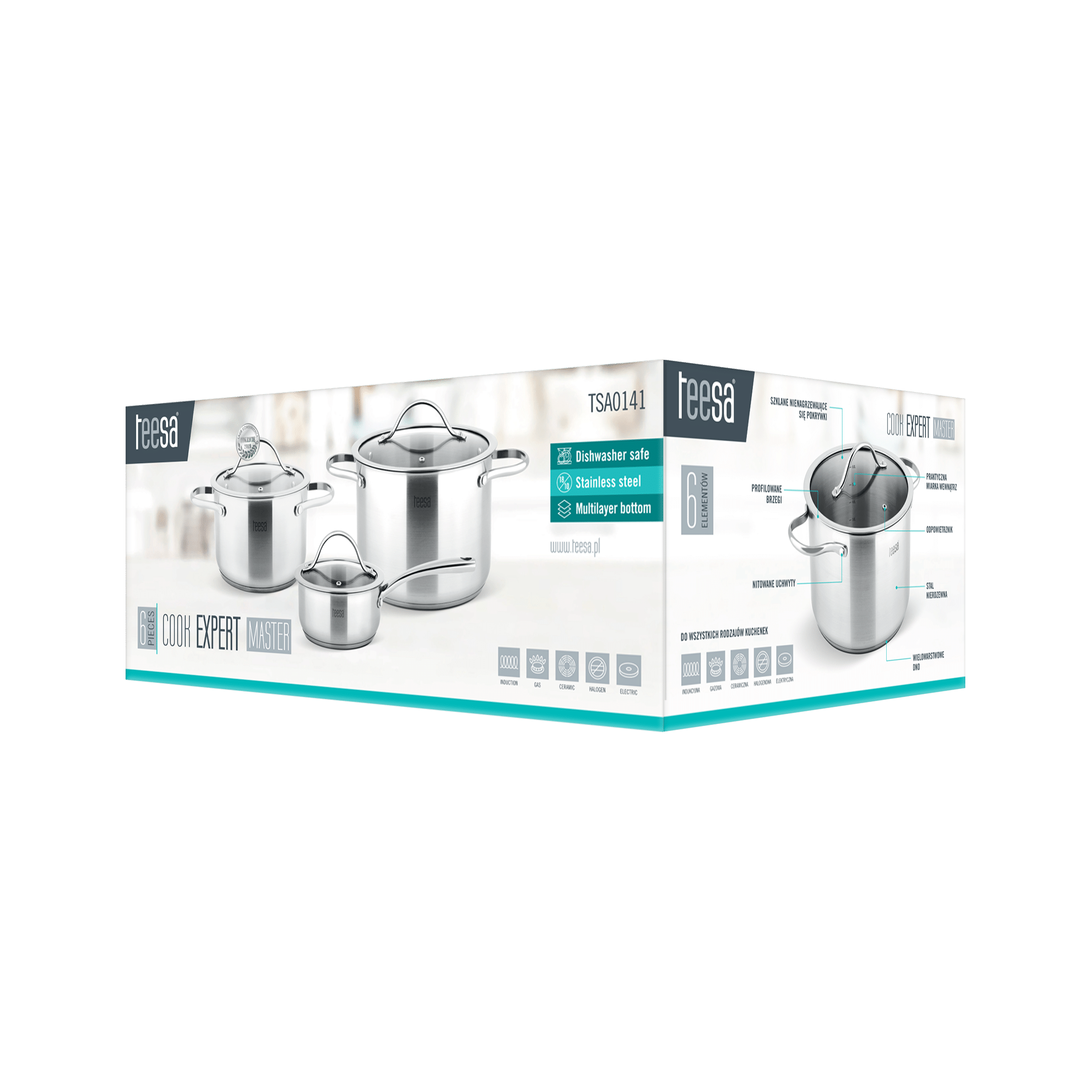 - Met de Teesa COOK EXPERT MASTER pannenset haal je goede stalen potten in huis.