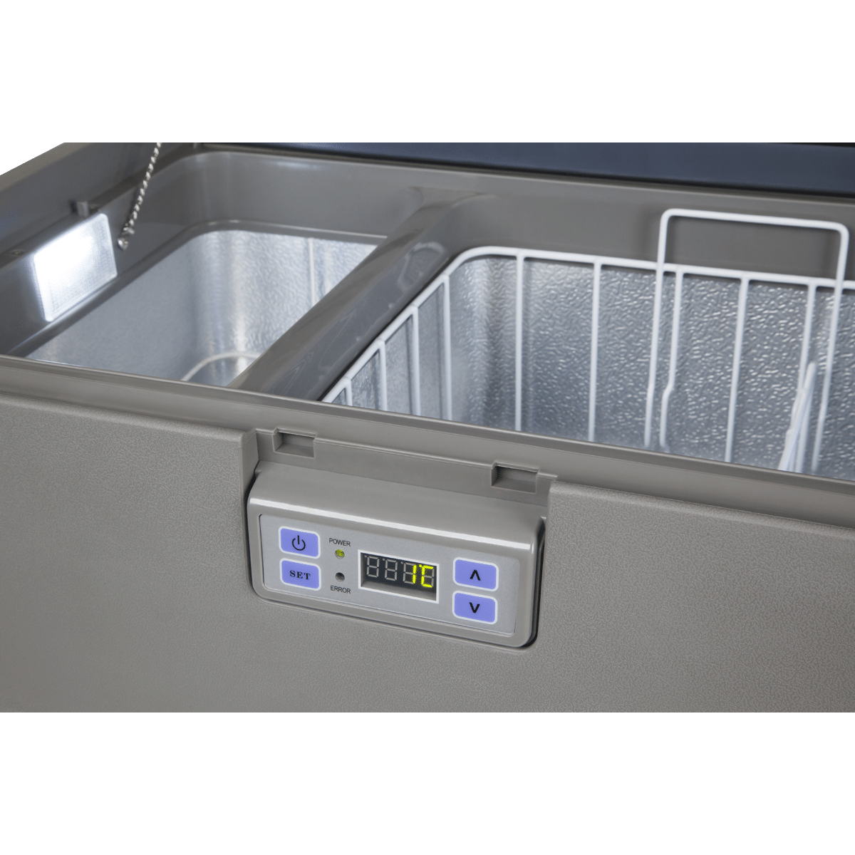 Deze krachtpatser de TSA5002 draagbare koelbox van Teesa is een superhandige draagbare koel- en vrieskast. Met zijn inhoud van wel 40 liter koelt en vriest de TSA5002 voedingsmiddelen tot wel -18°C. De binnenkant van de vriezer bestaat uit twee compartimenten, waarvan één met mand. Deze krachtpatser neemt weinig ruimte in beslag en is handig om mee te nemen, omdat het apparaat eenvoudig kan worden aangesloten op uw stopcontact of op de 12/24 volt sigarettenaansteker van de auto. Dus of u nu onderweg bent of even extra vriesruimte nodig hebt, met de TSA5002 van Teesa heeft u de perfecte oplossing om uw dranken koel te houden.