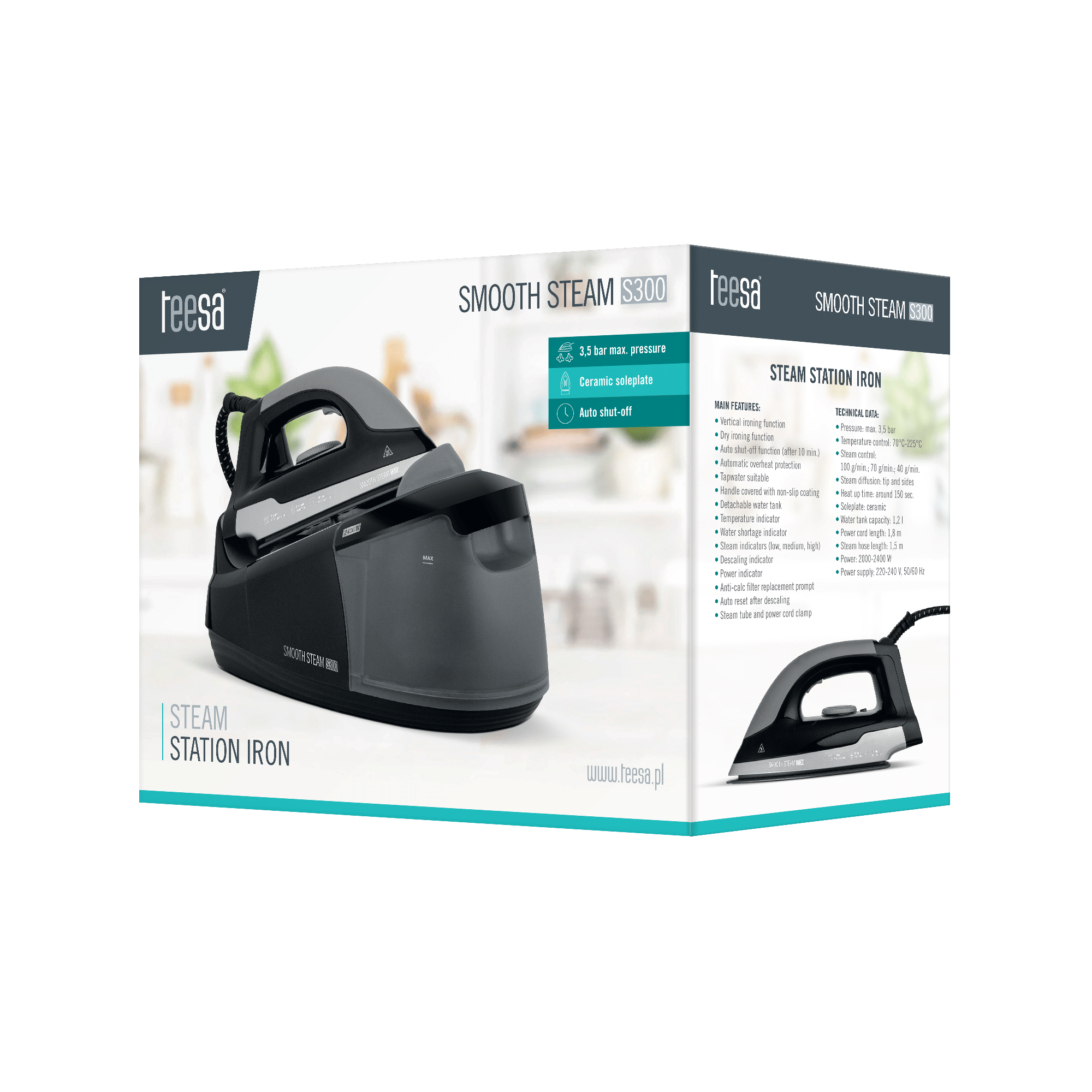 Teesa stoomstrijkijzer Smooth Steam S300 stoomgenerator 1,2 liter zwart TSA2030