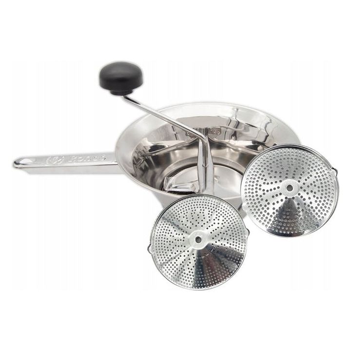 Pureer groenten, fruit en meer met deze stevige passeerzeef van roestvrij staal – met 2 verwisselbare zeven.