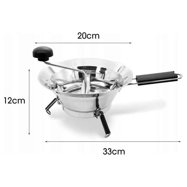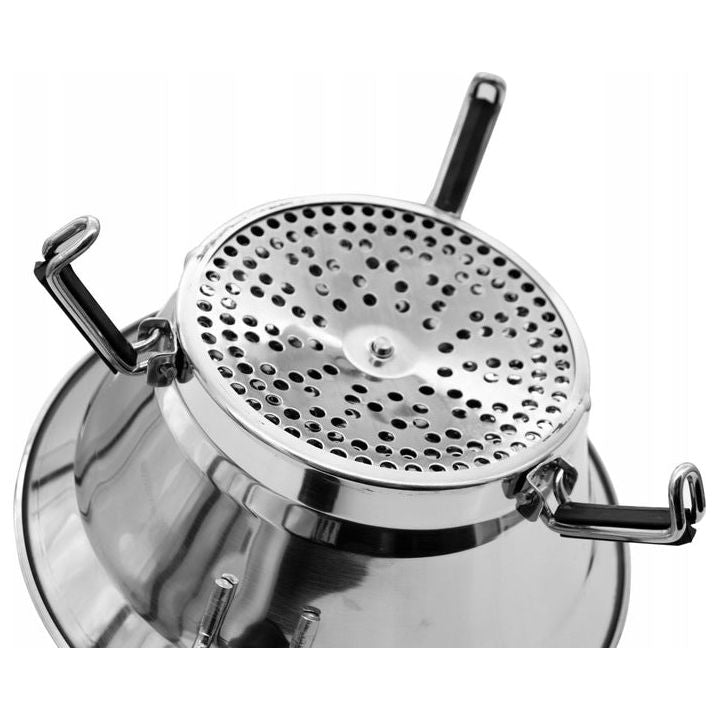 Volledig gemaakt van roestvrij staal, met 3 verwisselbare zeven (2 mm, 3 mm, 5 mm). Kies zelf de juiste textuur – van grove compote tot zijdezachte saus. Stevig, hygiënisch en ontworpen voor dagelijks gebruik.