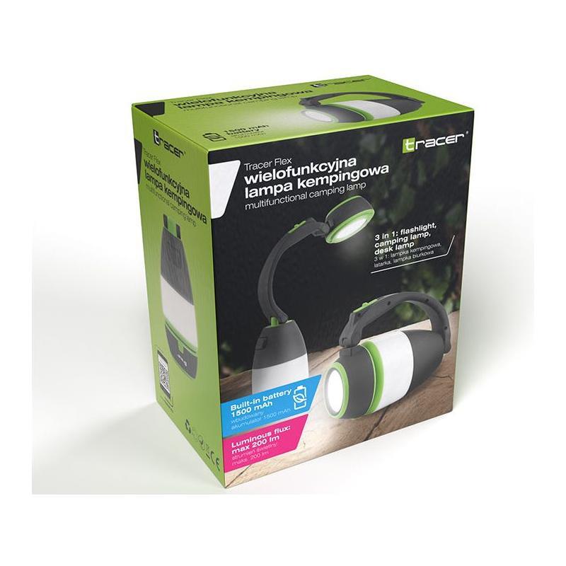 De Tracer Flex-lamp is een multifunctioneel apparaat dat dienst doet als campinglamp, zaklamp en tafellamp. Een handige compagnon voor verschillende situaties.