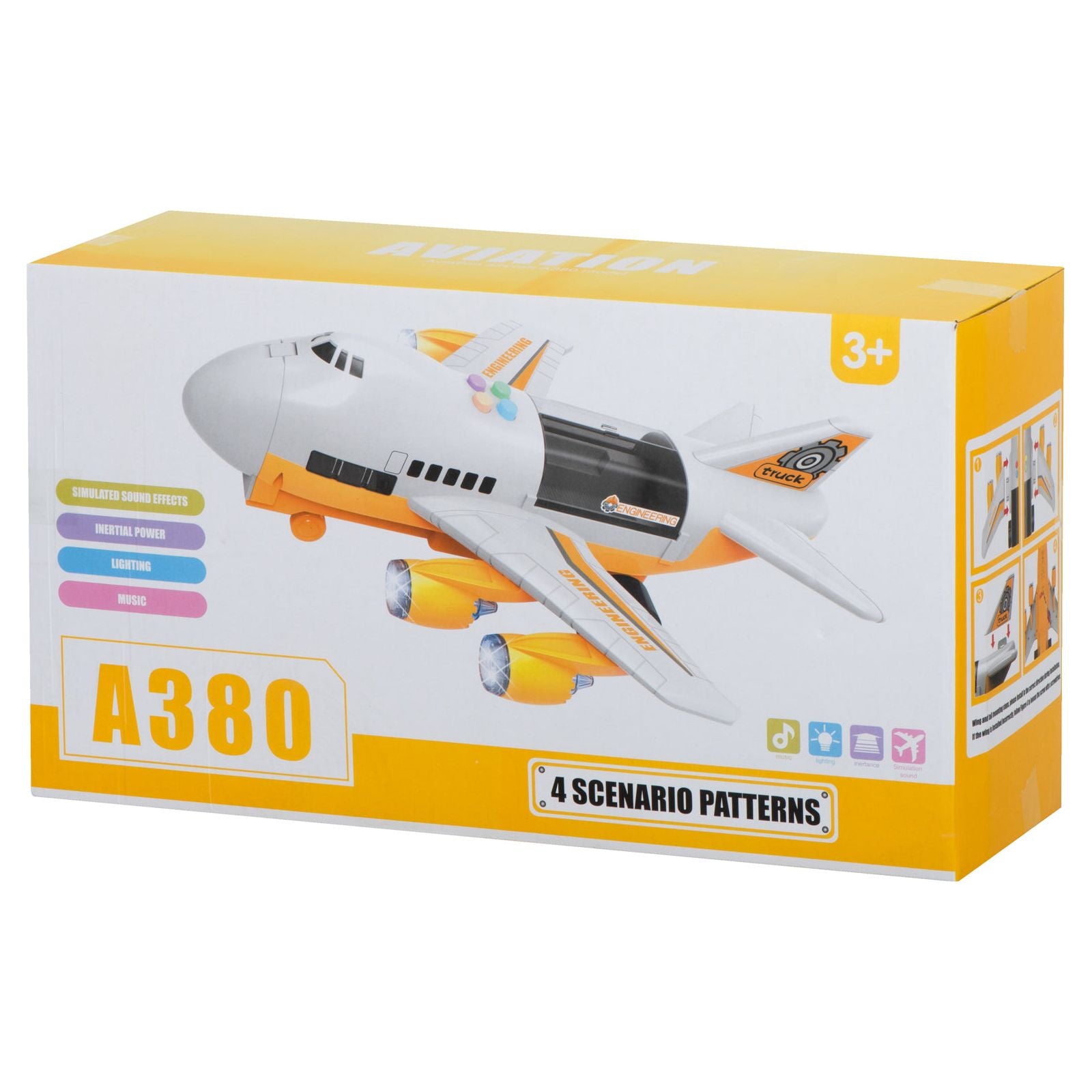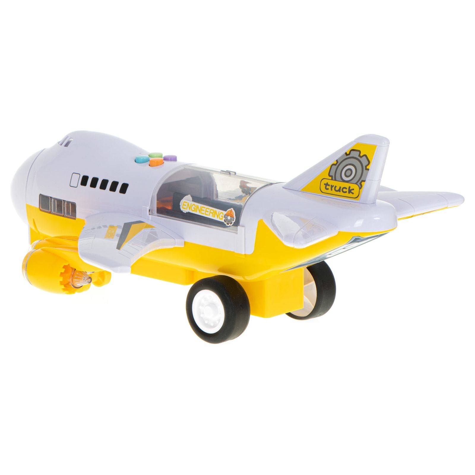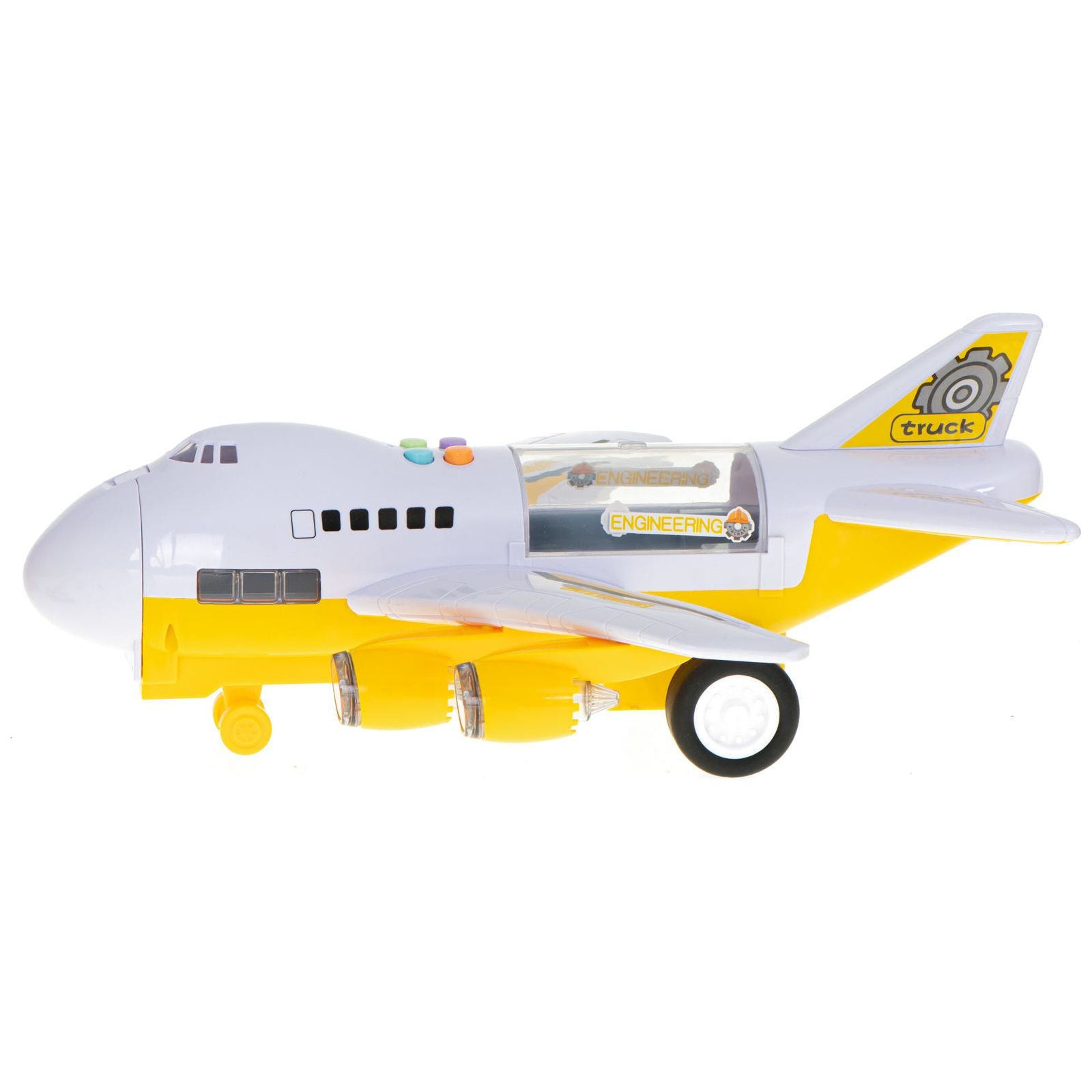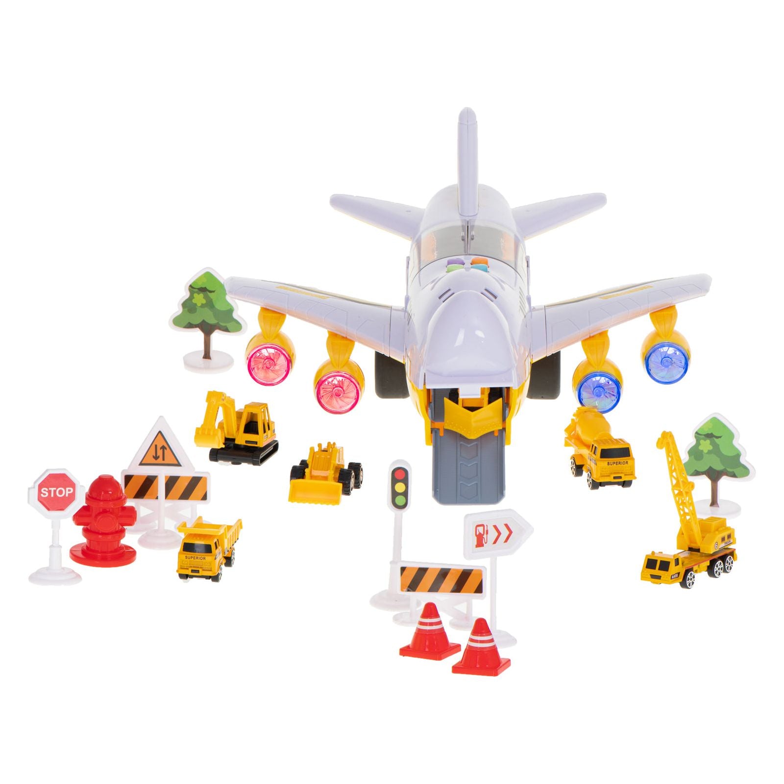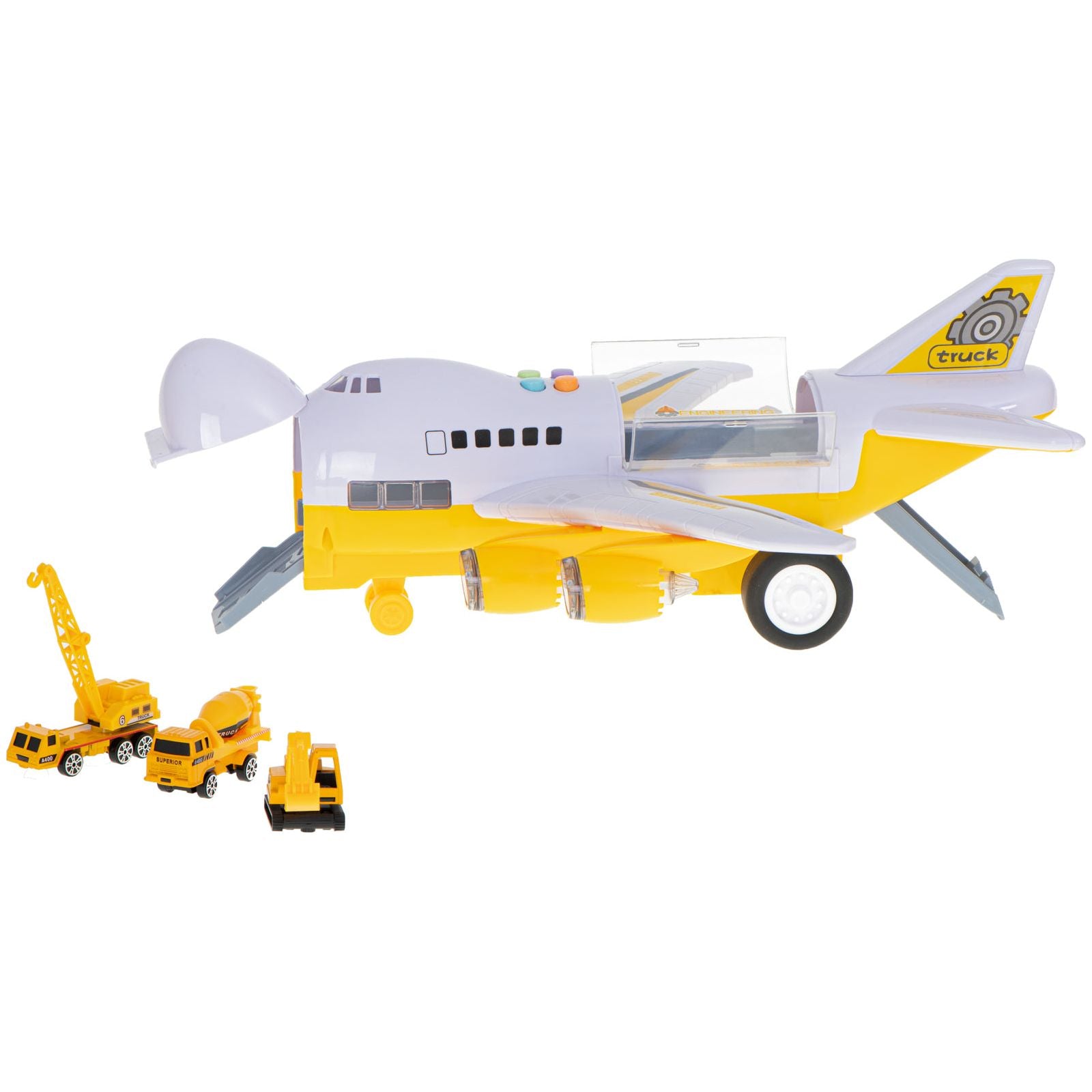 Transportvliegtuig met LED Verlichting en Geluid + 6 Bouwvoertuigen - Open aan de Zijkant en Voorkant - Geel