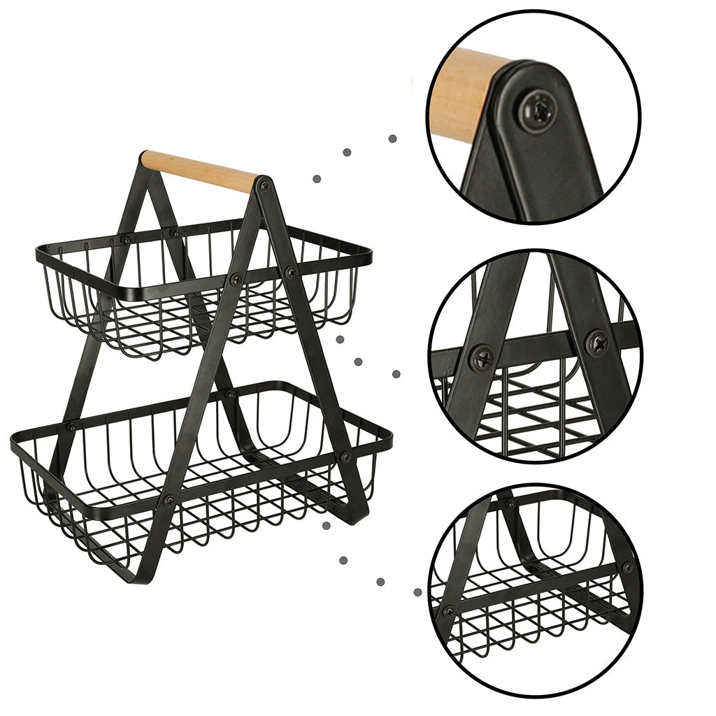 Wil je je fruit, groenten en accessoires netjes en langer vers bewaren? De Trendmix 2-laags fruitschaal is een multifunctionele organizer die net zo goed werkt als fruitmand in de keuken, badkamer organizer of decoratieve etagère in de woonkamer. Het dubbele ontwerp bespaart ruimte, terwijl het luchtcirculerende design fruit langer vers houdt. Het industriële zwarte metaal en het houten handvat maken dit een stijlvolle toevoeging aan elk interieur.
