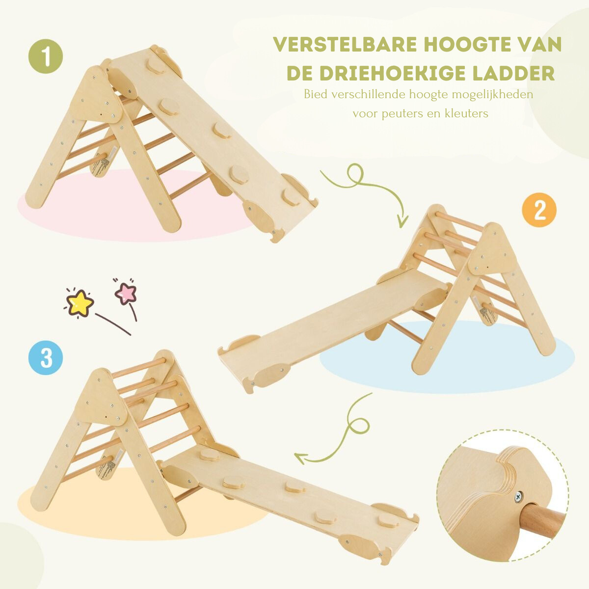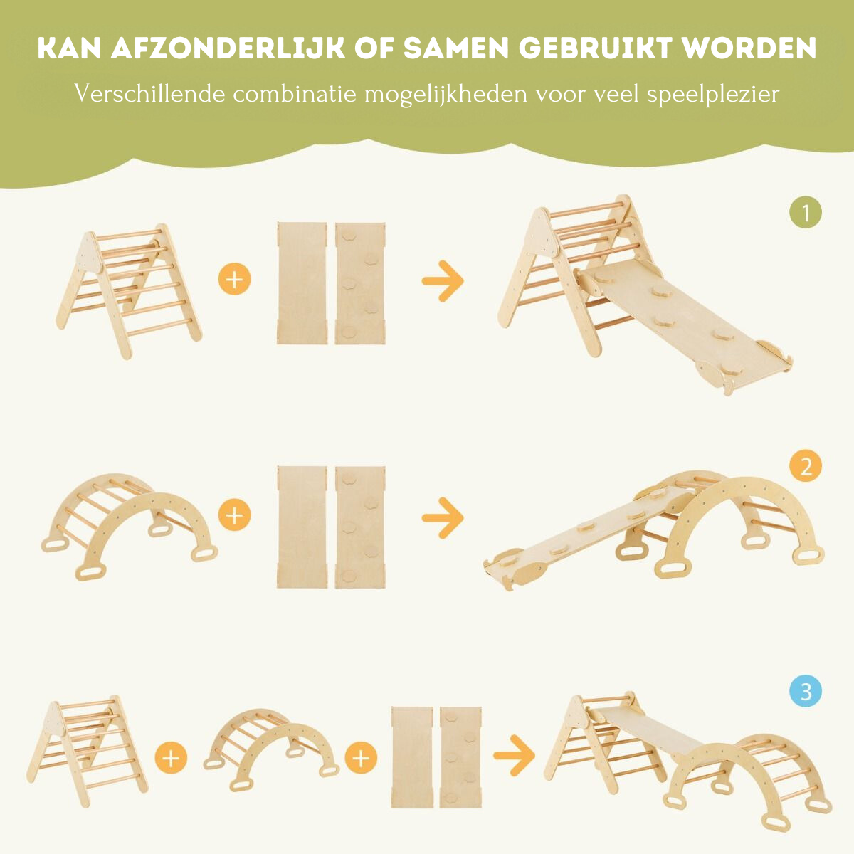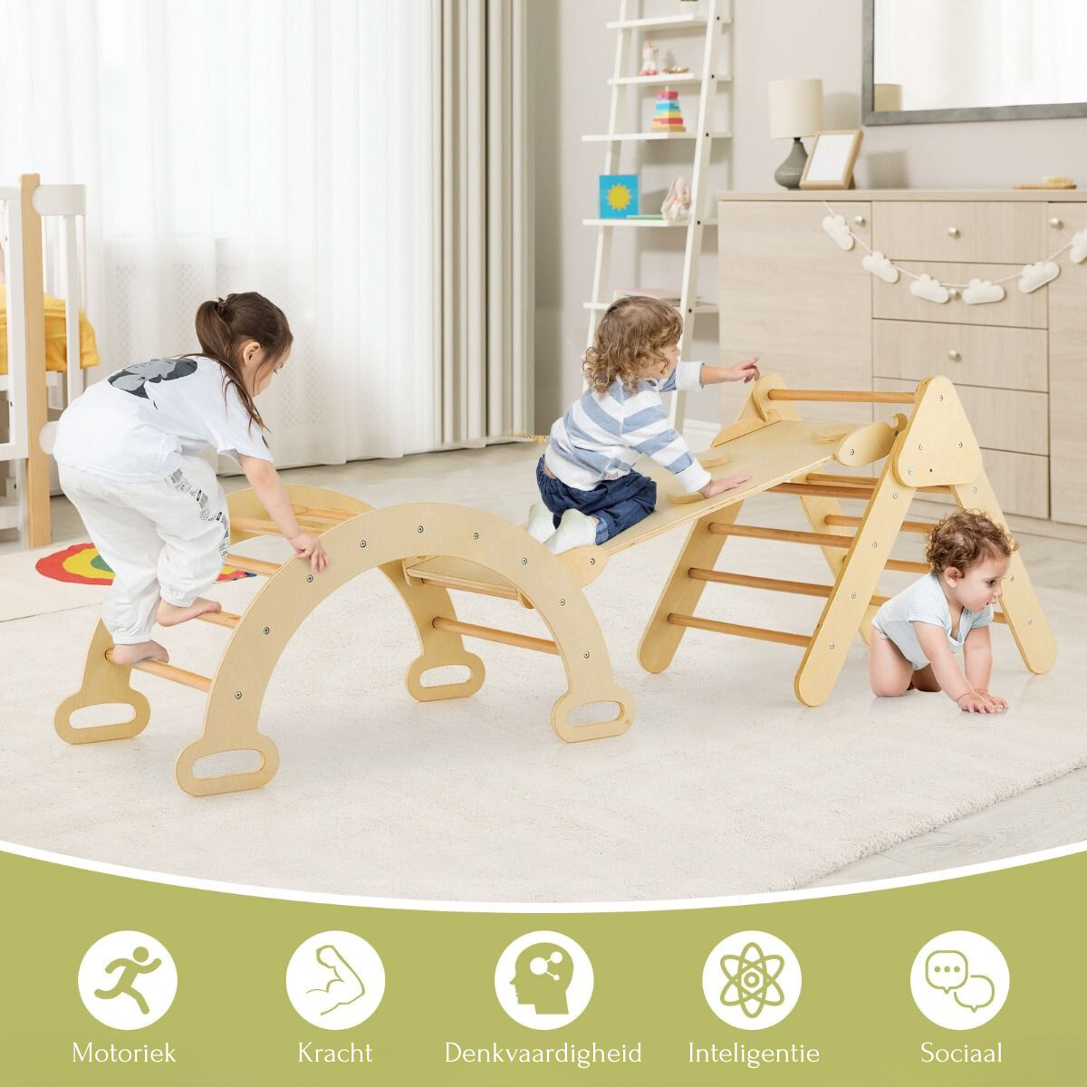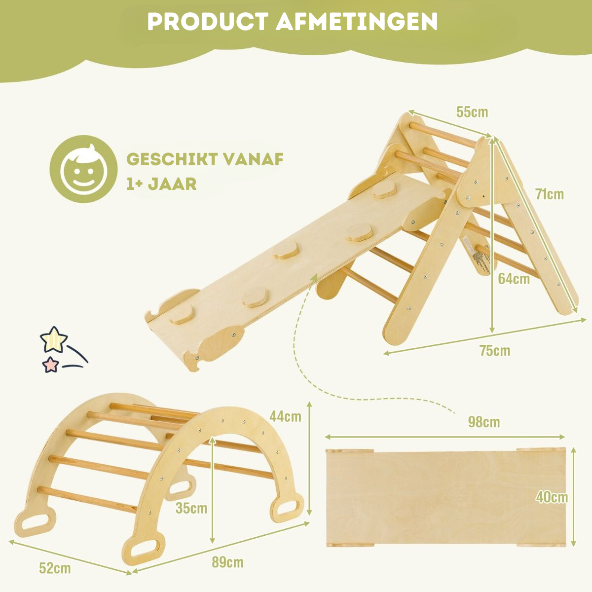 Laat kinderen genieten van verschillende speelactiviteiten met deze houten klimset - perfect voor uren speelplezier!