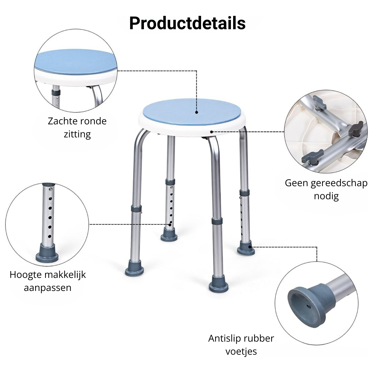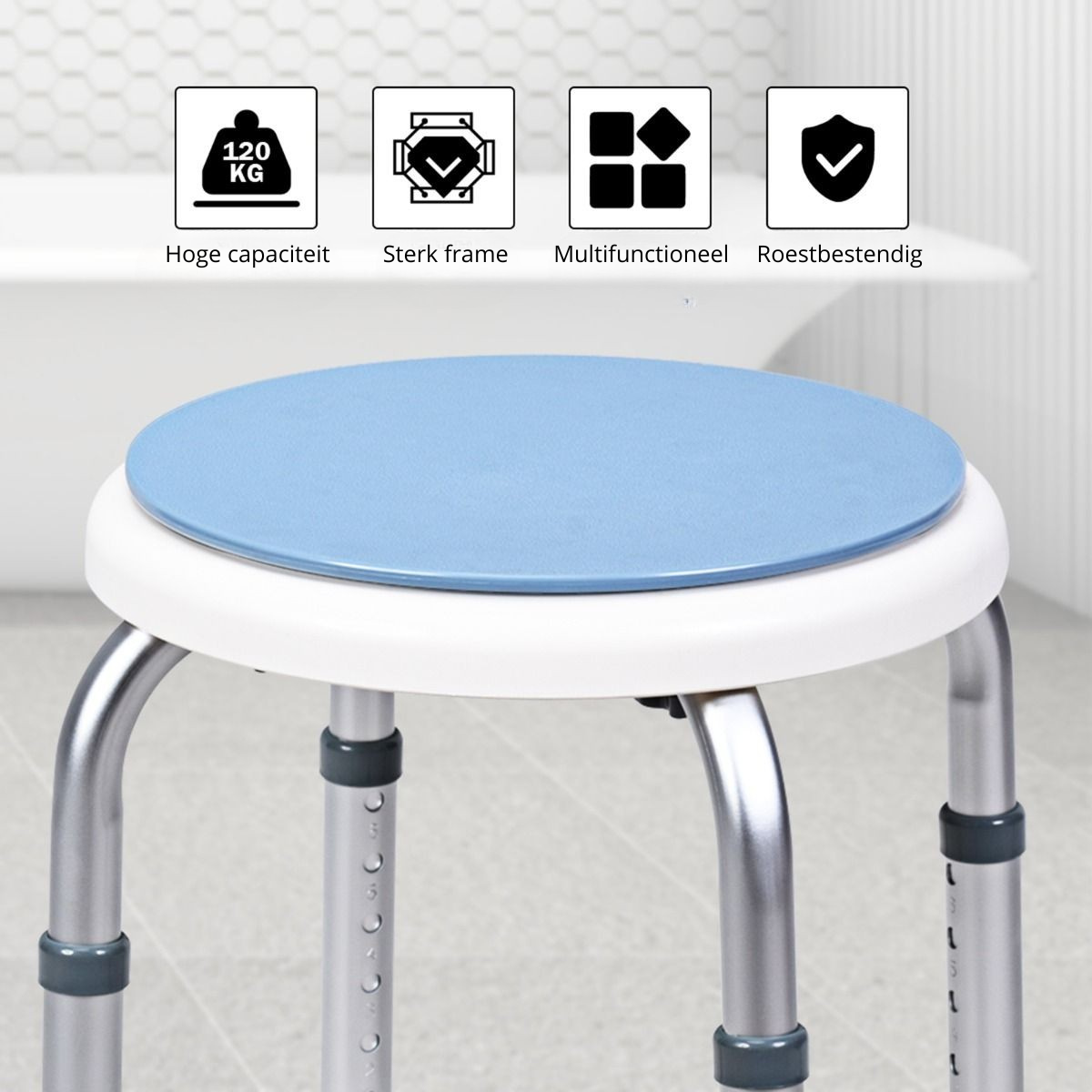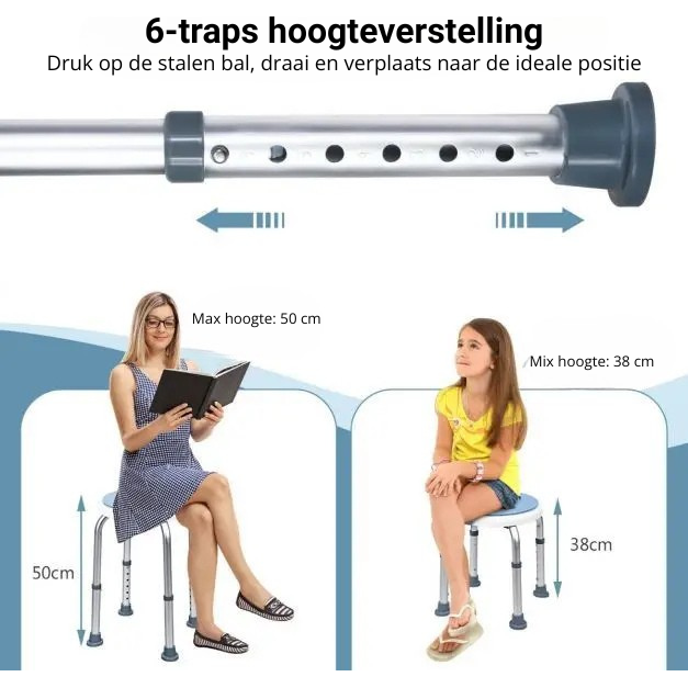 Veilig douchen met vertrouwen – Trendmix douchekruk met draaibare zitting en verstelbare hoogte