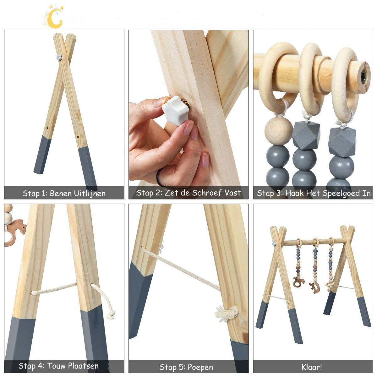 Inhoud set: 1 houten frame, 3 hangende speeltjes