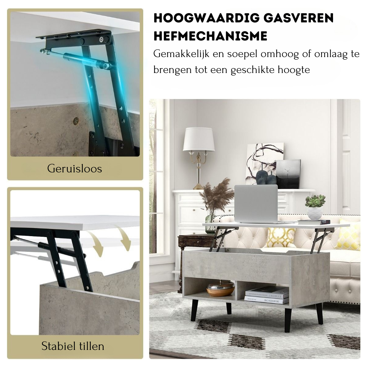 - Upgrade je interieur met deze moderne multifunctionele salontafel in chique grijs.