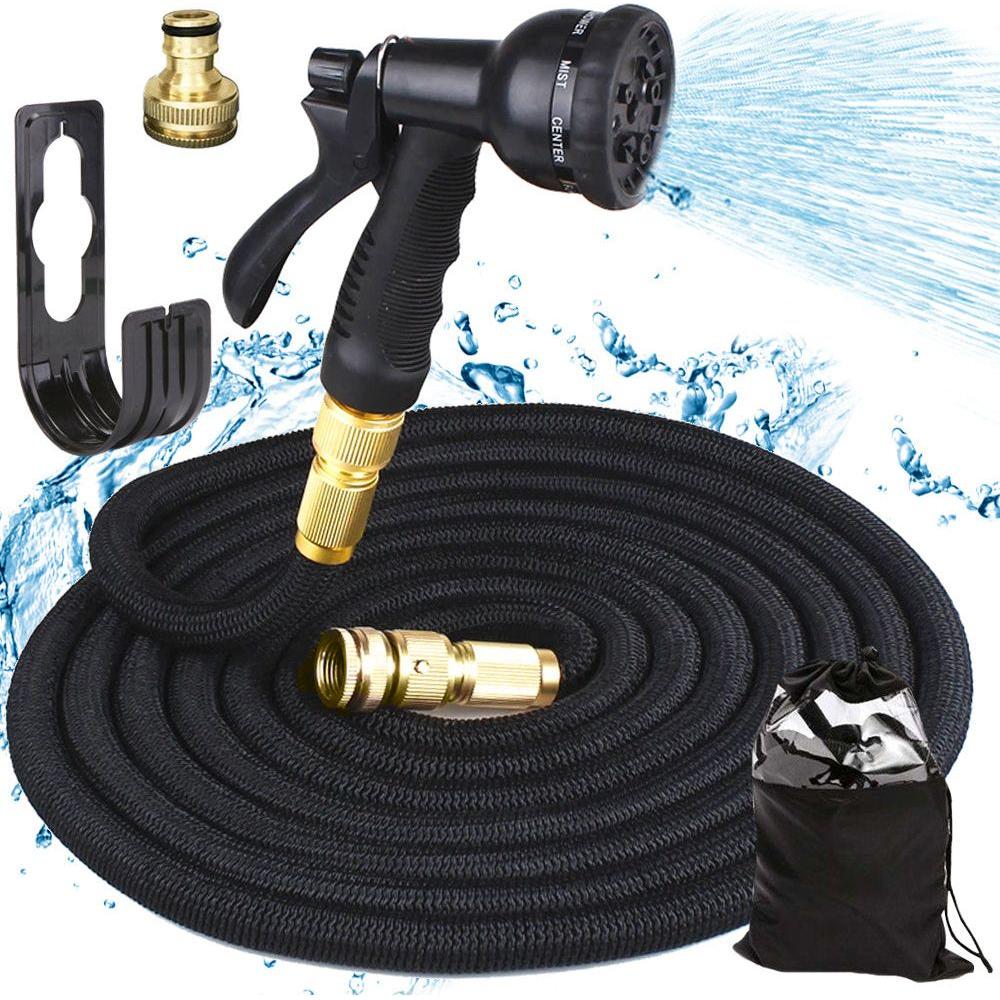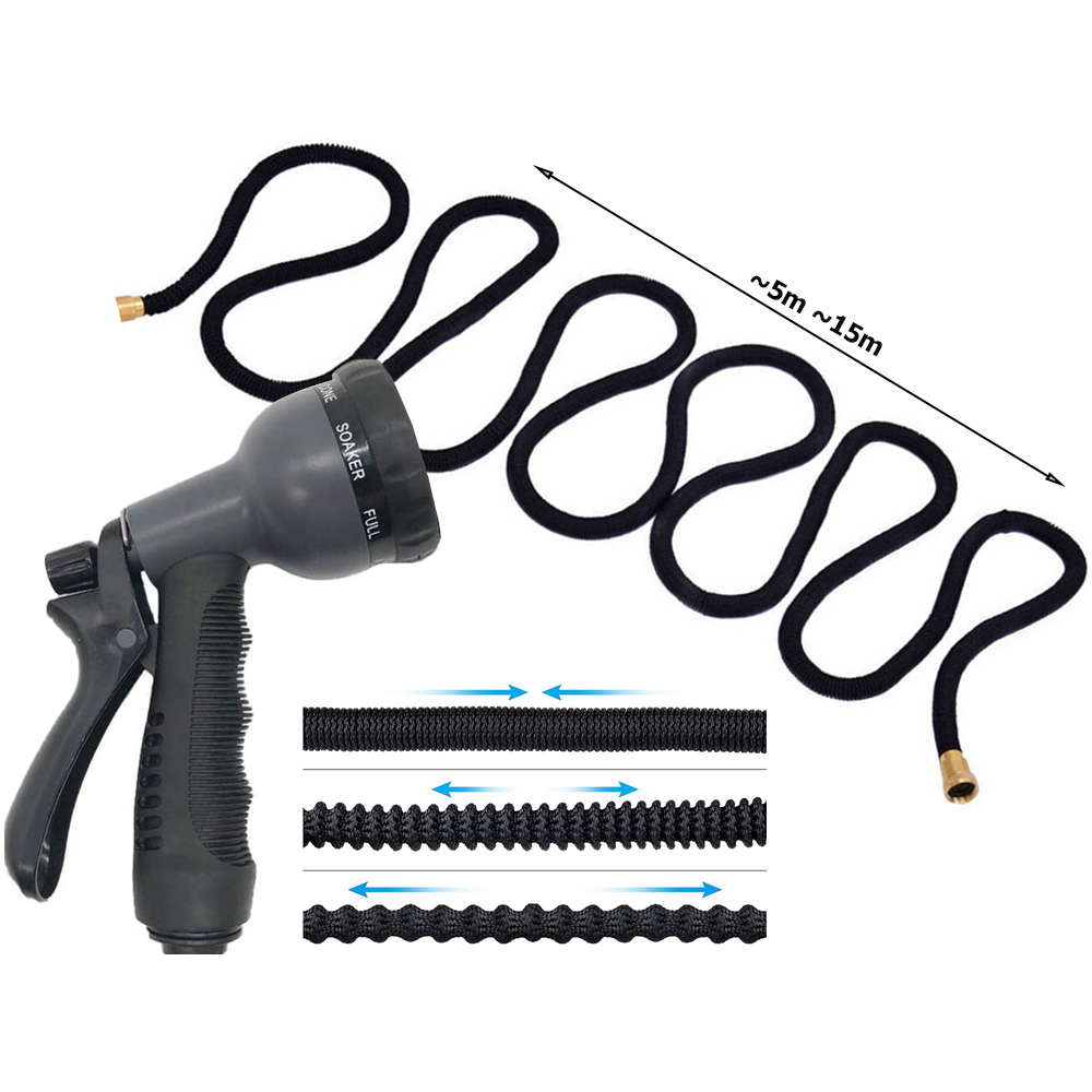 De tuinslang is gemaakt van hoogwaardige materialen, rekt uit onder invloed van water, is licht en handig in gebruik, neemt weinig ruimte in beslag, heeft een multifunctionele sproeier met 8 standen, en is weerbestendig. Daarnaast bevat de set een haak en een trekkoordtas voor het inpakken.