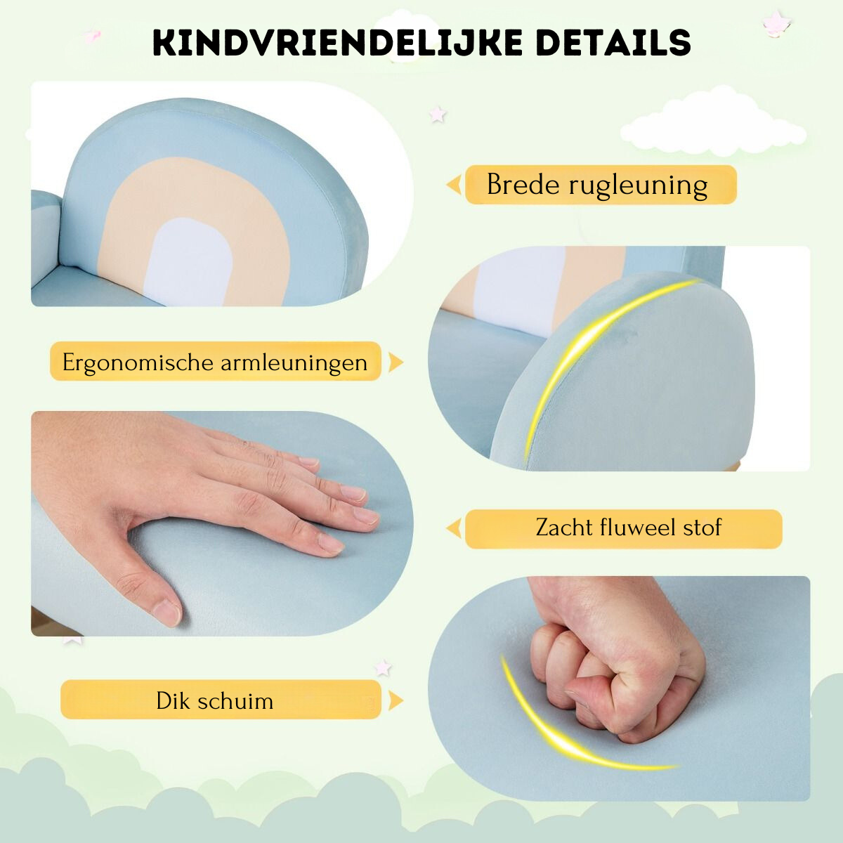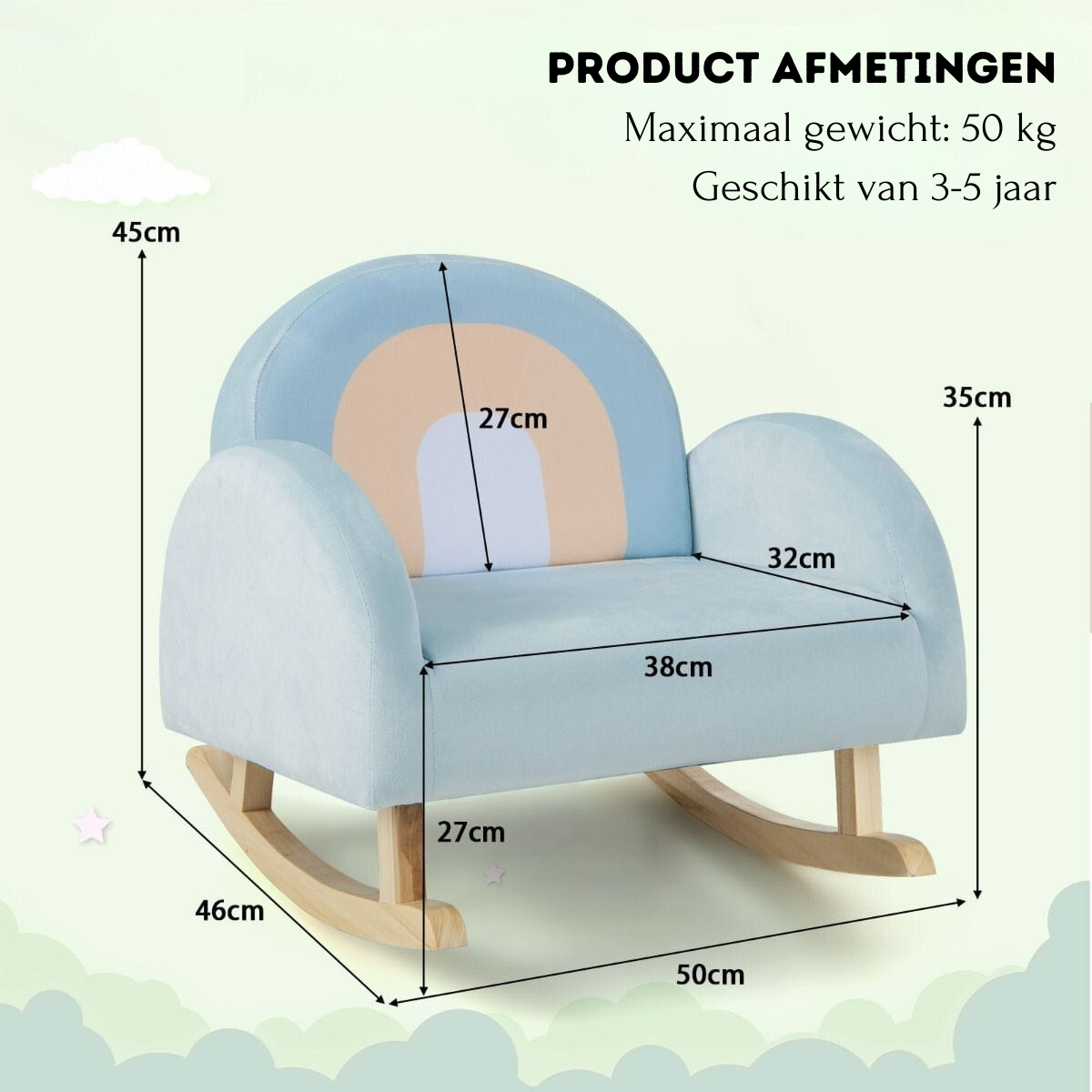 De Trendmix kinderschommelstoel in fluweelstof blauw is meer dan alleen een meubelstuk: het is een veilige en comfortabele plek waar je kind zich geborgen voelt, elke dag opnieuw.