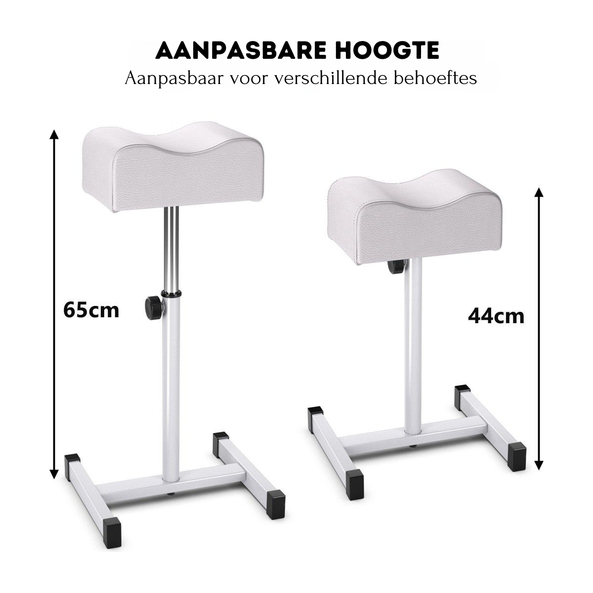 Werk je graag schoon, strak en professioneel? Deze witte pedicure- en manicure voetensteun is perfect voor salons en thuisspecialisten die comfort willen combineren met een frisse, hygiënische uitstraling. Dankzij de traploos verstelbare hoogte (45–65 cm) pas je hem moeiteloos aan elke klant of werksituatie aan. De zachte lederen bekleding, het robuuste stalen frame en de lichte constructie maken dit een onmisbare tool voor elke beautyprofessional.