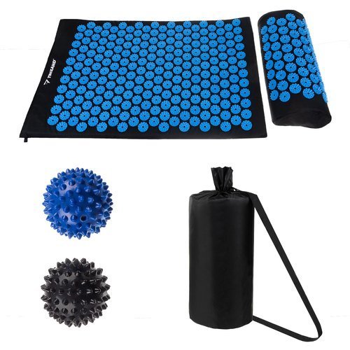 Trizand Acupressuur mat met kussen en massageballen inclusief opbergzak blauw
