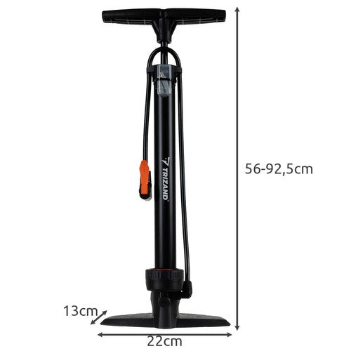 Trizand fietspomp met analoge drukmeter 22 x 13 x 56-92,5 cm zwart