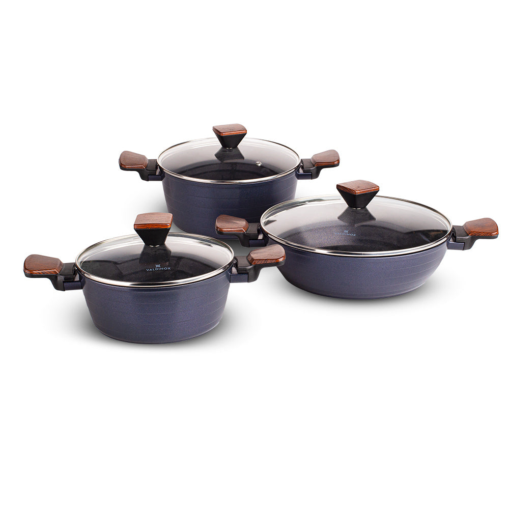 Bent u opzoek naar een nieuwe kookpannenset? Dan is deze 6-delige set van Valdinox misschien wel wat voor jou. Gemaakt van hoogwaardige materialen wat er voor zorgt dat je jarenlang plezier van deze pannenset kan hebben. De non stick coating zorgt ervoor dat het voedsel niet blijft plakken. Door de gehard glazen deksels kan je het te bereiden voedsel gemakkelijk in de gaten houden.