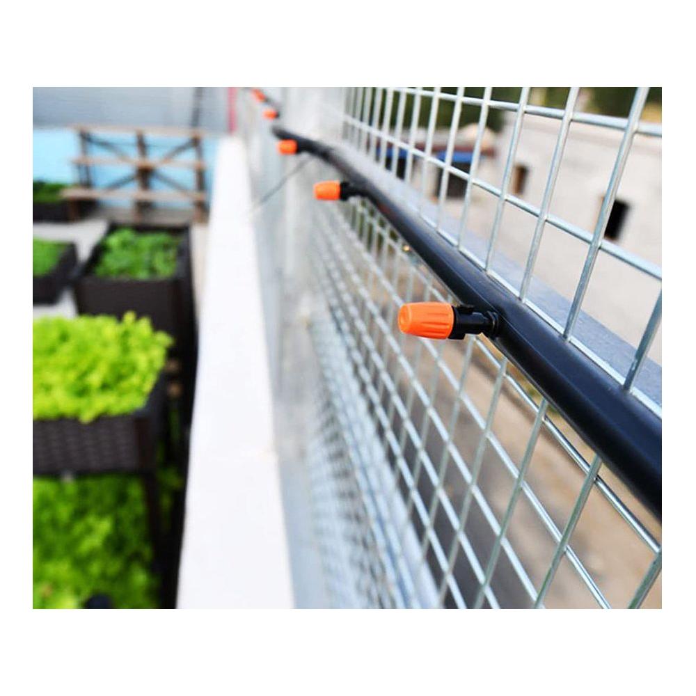 Het Vernevelaar Tuin Vernevelingssysteem is ideaal voor beregeningstunnels in de tuin, tuinirrigatie, het water geven van bloemen en potplanten, en het nevelsproeien van het gazon.