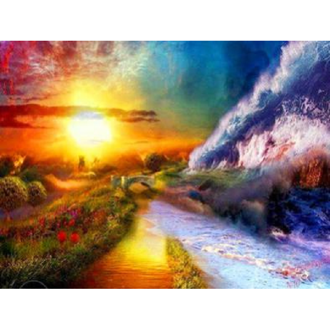 VSE Diamond painting voor volwassenen zon en wolken 30 X 40 cm met vierkante steentjes - Volledig pakket - M1689-7