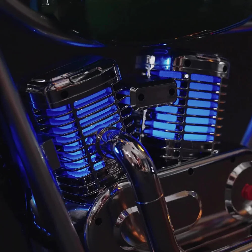 - Laat ze schitteren met de RGB-verlichting van de motorzuigers en de stoomuitlaatimitatie.