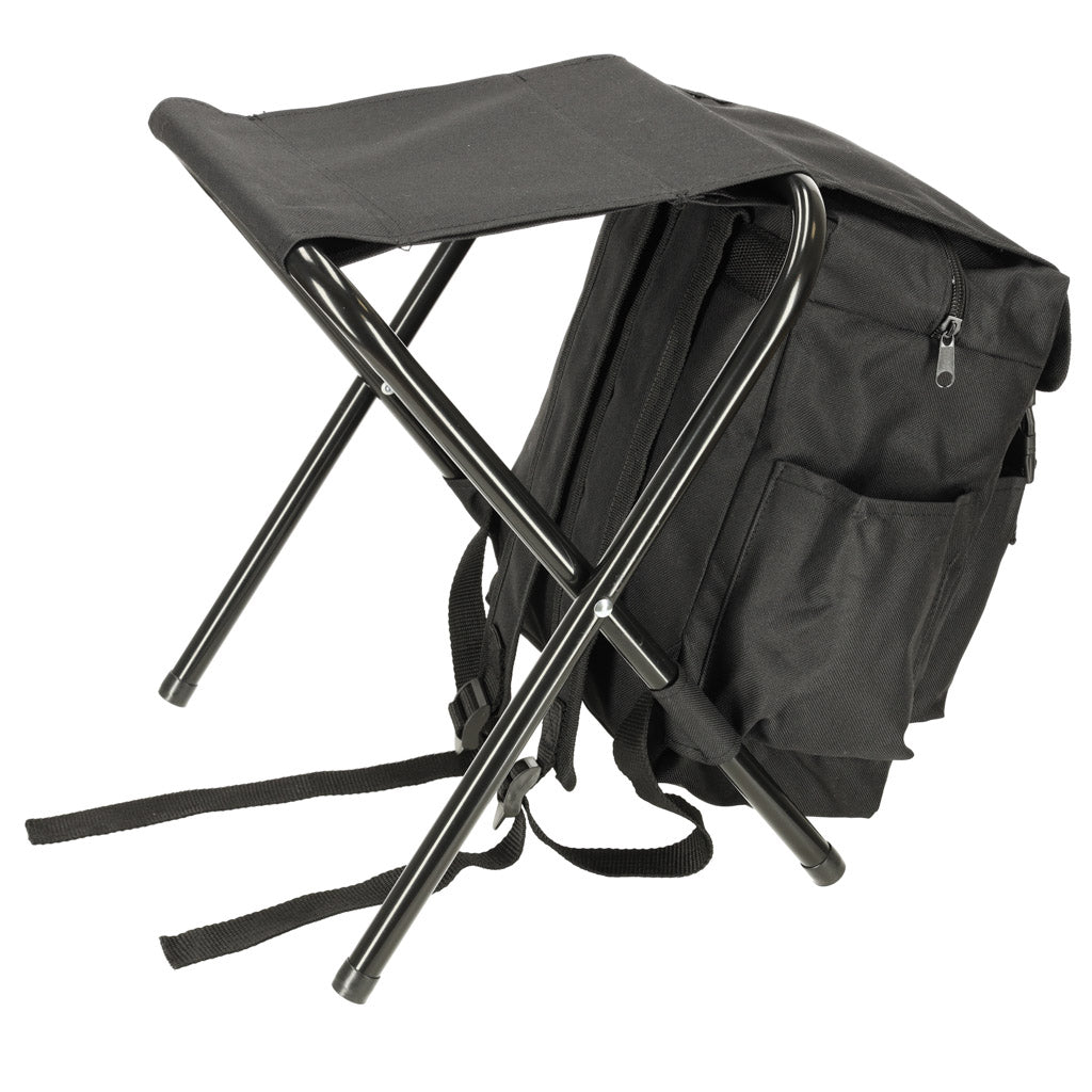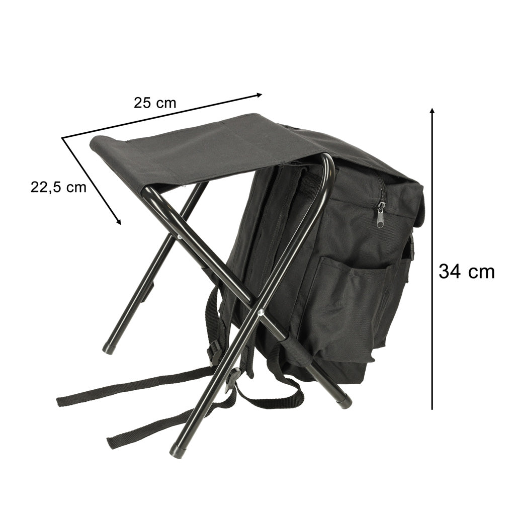 Deze Campingstoel die om te toveren is tot Rugtas is compact op te vouwen en eenvoudig mee te nemen in de Caravan of Camper.